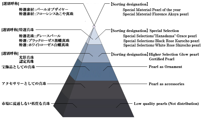 対象測定真珠の(巻き、形、テリ、キズ)において最高品質の基準にあると認められたもの