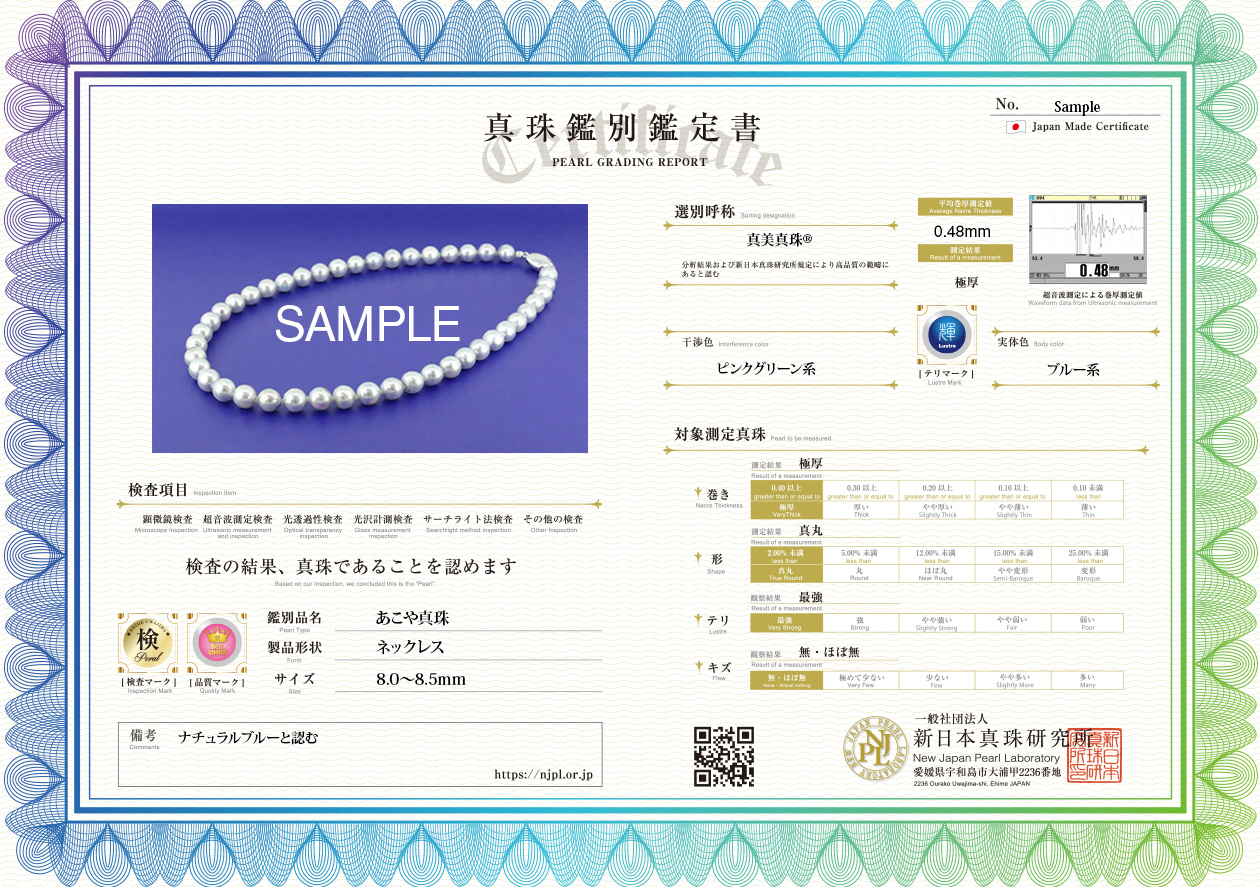 新日本真珠研究所グレーディングシステム -Our Grading system-